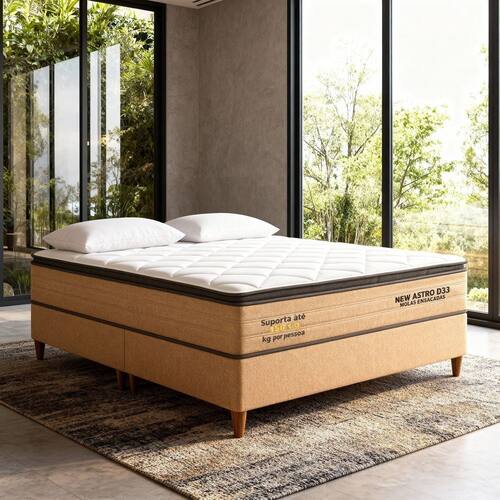 .Camada estrutural em EPS Produto Montado: Não Abertura para Ventilação: Não Acompanha Cama Auxiliar: Não Acompanha Colchão: Sim Altura da Base Box (Sem o Colchão): 42 cm Altura do Colchão (Sem a Base Box): 30 cm Altura Máxima dos Pés: 12.0000 Ambiente Principal: Quarto Antiácaro: Sim Antialérgico: Sim Antifungo: Sim Bicama: Não Cantoneiras: Sim codigo_ean: 7900288280190 Conjugado: Não Cor: Laranja/Branco Cor do Produto: Laranja/Branco Espessura da Mola: 2 mm Informações Complementares: Girar o produto a cada 30 dias Itens Inclusos: 2 Bases Box e 1 Colchão Linha ou Coleção: New Astro/Luxo Manual de Montagem e Instalação: https://product-hub-prd.madeiramadeira.com.br/207167100/documents/b465afac-c73b-421c-bf44-7ba0b49d94bc3306551667317619160698937.pdf Marca: Móveis Bom Pastor Material dos Pés: Plástico Molas por m²: 176 Necessita Montagem: Não Nível de Conforto: Firme Origem do Produto: Nacional Peso: 90 kg Pillow: Pillow Top Possui Baú: Não Possui Pillow: Sim Precisa virar: Sim Recomendações de Uso, Manutenção e Limpeza: Não usar produto químico, limpar com apenas pano limpo úmido. Revestimento da Base Box: Veludo Tamanho: King Tamanho de Colchão: King Tipo de Cama Box: Base Box Tipo do Colchão: Mola