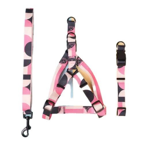 Conjunto Coleira + Coleira Peitoral + Guia Para Cães Rosa - Tamanho: G