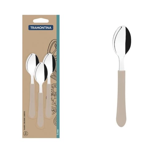 O Conjunto de colheres de chá Tramontina Leme com lâminas em aço inox e cabos de polipropileno cinza 3 peças é a companhia perfeita para aquela hora aconchegante do chá com os amigos. Com lâminas produzidas em aço inox e cabos de polipropileno, elas são duráveis, resistentes e deixam sua mesa ainda mais bonita devido a cor cinza. São muito fáceis de limpar e podem ir à máquina de lavar louças. A escolha perfeita para relaxar e curtir os melhores momentos do dia!
