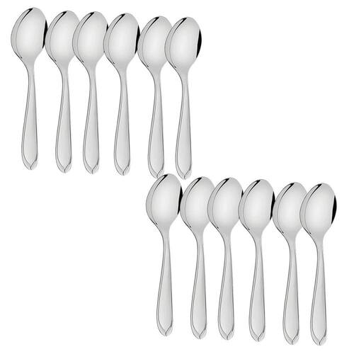 - Peças totalmente feitas de aço inox, altamente duráveis, preservando a beleza, a higiene e a durabilidade do material. - Colheres com bojo em formato simétrico e bordas cuidadosamente arredondadas. - Acabamento em brilho, com detalhes no cabo. - Próprias para uso diário combinam com qualquer ambiente. - Podem ser lavadas diariamente na máquina de lavar louças.