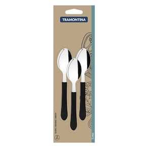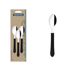 Conjunto de Colheres para Chá Tramontina Leme com Lâminas em Aço Inox e Cabos de Polipropileno Preto 3 Peças
