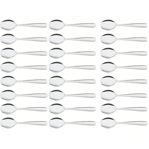Garantia: 90 dias / Peso total: 384g / Cor predominante: inox / Referência: 7798139224352; Dimensões de cada colher: 12,8cm (C) x 3cm (L) x 1,5cm (A); Conteúdo: 24 colheres para sorvete; Material: aço inox.