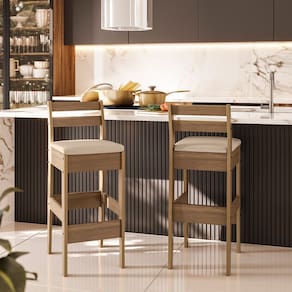 A Banqueta Gourmet destaca-se pela impressão dos detalhes amadeirados, replicando um design clean e despojado, dando um toque de modernidade ao ambiente e deixando o espaço das refeições ainda mais charmoso. Os acabamentos oferecem maior qualidade e durabilidade ao móvel. A imagem é ilustrativa. Itens inclusos: 2 banquetas (MDF) com assentos estofados. Obs: O produto segue com manual de instruções e com todas as ferragens necessárias para sua montagem. Não disponibilizamos serviço de montagem. INFORMAÇÕES: Pintura UV texturizada em alto relevo com alta resistência a riscos;Estofados com espuma de alta densidade;Design moderno e diferenciado.