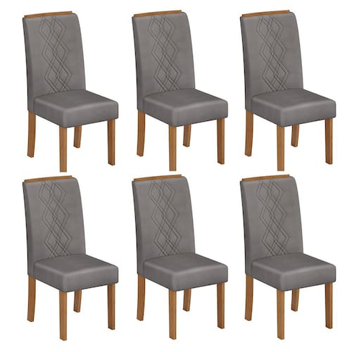 Características: Estrutura em MDF e MDP Acabamento em Pintura UV Tecido 100% Poliéster - Veludo Espuma do Assento D20 AS, Espuma do Encosto D13 Resistência de até 130Kg sem impacto Espaldar de MDF, o que Facilita o Manuseio da Cadeira Bordado no Encosto Bordas em PVC Pés Fixos com Sapatas