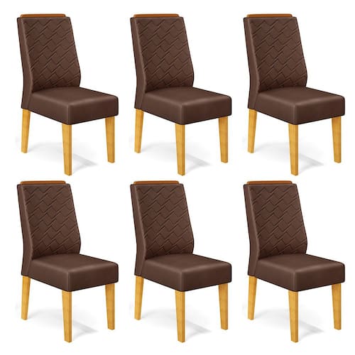 Conjunto com 06 Cadeiras Lídia Cedro Veludo Moca DJ Móveis - Marrom