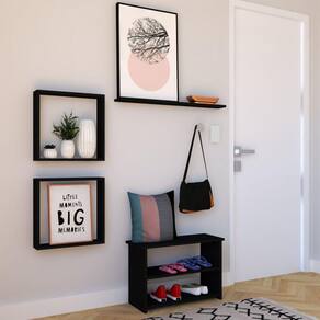 A coleção Kit Cubos é perfeita para quem quer deixar o ambiente mais bonito e aconchegante! Além de ser ótimo para complementar a decoração, ele também possui multifunções, diversos ambientes da casa. É produzido com materiais de alta qualidade e consegue unir elegância no momento de compor um lindo projeto! Acabamento: Melamínico Altura: 40 cm Ambiente Principal: Sala de Estar Complexidade da Montagem: Média: pode ser montado por mais de uma pessoa e/ou necessite de maior conhecimento para montagem Cor: Preto Cor do Produto: Preto Cor Predominante: Preto Escala de Brilho: Fosco Garantia do Fornecedor: 03 meses Itens Inclusos: 1 Banco, 1 Prateleira e 2 Nichos Branco, Kit Ferragens e Manual de Montagem. Largura: 60 cm Linha ou Coleção: KitCubos Manual de Montagem e Instalação: https://cdn2.madeiramadeira.com.br/atributo/bramov-m-veis/678507-kitkc21-manual.pdf Material Principal: MDF/MDP Necessita Montagem: Sim Origem do Produto: Nacional Peso: 13 kg Profundidade: 24 cm Recomendações de Uso, Manutenção e Limpeza: Limpar apenas com pano macio levemente umedecido. Sistema de Montagem: Parafusos e Minifix
