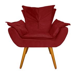 Conjunto Com 1 Poltrona e 1 Puff Para Salão de Beleza Apolo Suede Vermelho Bordo - LM DECOR