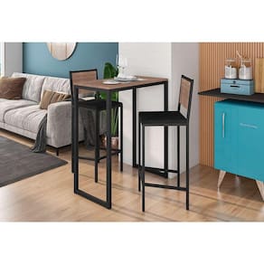Que tal o Conjunto de Banquetas Aura?Seja para aquele cafezinho rápido antes de começar o dia ou para reunir os amigos na área gourmet em ocasiões especiais, o Conjunto de Banquetas Aura será um grande aliado para o seu lar-style dos sonhos. Com estrutura em aço, encosto em MDP e assento estofado com espuma, as duas banquetas deixam todos à vontade para aproveitar cada momento de descontração, já que oferecem estabilidade e resistência para o uso diário. Já a junção de acabamento amadeirado com a cor preta dá um ar industrial à peça, que é perfeita para criar decorações contemporâneas e cheias de bom gosto. Depois, é só adquirir a mesa ou bancada dos sonhos e desfrutar muito o seu cantinho!