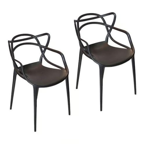Conjunto Com 2 Cadeira Masters 100% Polipropileno Preta - Preto