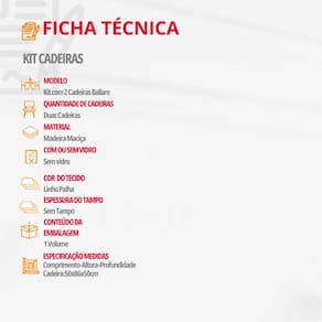Características: Cadeiras são entregues montadas Material da Estrutura: Madeira Tipo de Acabamento: Pintura Uv Possui Vidro: Não
