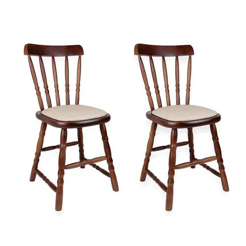 Conjunto com 2 Cadeiras Dalas Linho Bege e Nozes - Marrom Escuro