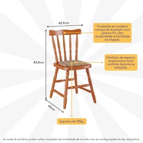 Adicione um toque de classe à sua casa com com o Conjunto com 2 Cadeiras de Jantar Madeira Maciça com Estofado Multimóveis CR50081. É produzido em madeira maciça de eucalipto, garantindo durabilidade e resistência excepcionais. A pintura PU confere um acabamento sofisticado e de alta qualidade, que realça a beleza natural da madeira. As cadeiras (suportam até 110kg) possuem estofado de espuma no assento, oferecendo conforto. O modelo Mel possui revestimento do estofado 100% polipropileno, já o modelo Castanho possui revestimento 70% algodão e 30% poliéster. O design colonial adiciona charme e sofisticação a qualquer ambiente, tornando-as uma escolha perfeita para salas de jantar, cozinhas ou áreas de refeições.