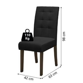 MEDIDAS:: [ A ] = 98 cm [ L ] = 42 cm [ P ] = 63 cm | PESO CADEIRA:: 7,50Kg | PESO SUPORTADO CADEIRA:: 110 Kg | MODELO:: DUBAI | MARCA:: Dobuê | COR DA CADEIRA:: Estrutura: Castanho / Assento: Preto | ESTRUTURA:: MDF 25mm | ACABAMENTO:: Pintura UV | TECIDO DA CADEIRA:: Veloplus | REVESTIMENTO INTERIOR CADEIRA:: Espuma D20 assento e D13 Encosto | SAPATAS:: Plásticas | DIFERENCIAL:: Acabamento costura matelassê | ITENS INCLUSOS:: 2 cadeiras | GARANTIA:: 3 meses pelo fabricante Cor: Cas/PtoTex
