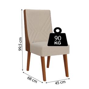 MEDIDAS: [ A ] = 99,5 cm [ L ] = 45 cm [ P ] = 68 cm PESO: 18 Kg PESO SUPORTADO: 90 Kg cada MODELO: Conjunto com 2 Cadeiras Estofadas Sala de Jantar Tifany Viero MARCA: Viero ESTRUTURA: Madeira Maciça ACABAMENTO: Pintura Verniz TECIDO: Linho e Tecido sintético REVESTIMENTO ASSENTO: Espuma D26 PÉS: Madeira Maciça SAPATAS: Plásticas DIFERENCIAL: Cadeira com encosto bordado, tecido linho e sintético, base madeira maciça. SISTEMA DE MONTAGEM: Parafusos e cavilhas ITENS INCLUSOS: 2 cadeiras, 1 manual de montagem e 1 kit parafusos INSTRUÇÕES E CUIDADOS: Limpar com pano levemente umedecido com água, não utilizar produtos abrasivos GARANTIA: 3 meses pelo fabricante