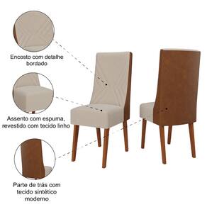 O conjunto 2 cadeiras Tifany é a escolha perfeita para cozinhas e salas de jantar que buscam conforto e estilo. As cadeiras Tifany são projetadas para combinar charme e resistência, transformando seu espaço em um local aconchegante e elegante. O encosto com bordados e revestido com tecido linho adiciona um toque de personalidade e sofisticação ao design. A parte traseira em tecido sintético traz um contraste moderno e fácil de limpar. Enquanto isso, o assento com espuma oferece conforto ideal para o uso diário. Os pés em madeira maciça garantem estabilidade e durabilidade, tornando o conjunto uma escolha duradoura e prática para seu lar.
