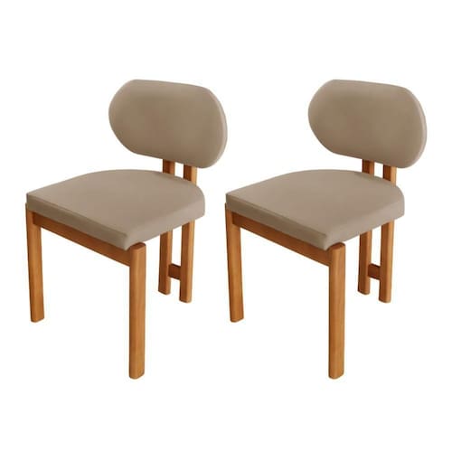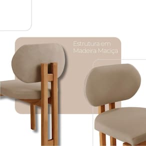 Conjunto Com 2 Cadeiras Madeira Nala Veludo Bege / Imbuia Nat.