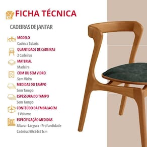 Conjunto Com 2 Cadeiras Madeira Solaris Moderna Mobilia Jade / Imbuia Nat. As cadeiras, produzidas em madeira macica, com um toque de solidez e elegancia. Seu assento estofado foi cuidadosamente projetado para oferecer bem-estar, enquanto a textura natural da madeira em seu encosto curvo reforca a conexao com a natureza. Afinal, nada melhor do que trazer para dentro de casa a serenidade e a beleza dos elementos naturais. Transforme seu ambiente com Solaris e sinta a diferenca de um design atemporal. Caracteristicas: Cadeiras sao entregues montadas Material da Estrutura: Madeira Marca: Moderna Mobilia Modelo: Solaris