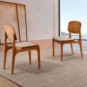 Conjunto com 2 cadeiras Malta Gold em Madeira Maciça para Sala de Jantar Moderna Mobília - Bege Claro