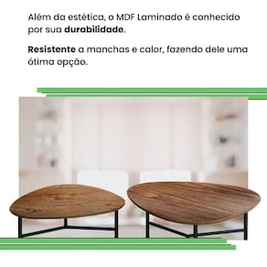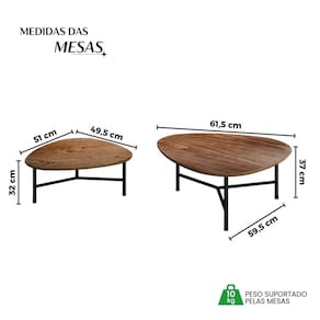 no formato de folha, oferecendo um design elegante e único. Suas bases em aço garantem robustez e estabilidade, proporcionando durabilidade e suporte seguro. Quando juntas, as mesas formam um design único e harmonioso, ideal para compor ambientes modernos e sofisticados. Perfeitas para salas de estar, estas mesas combinam funcionalidade e estilo, tornando-se peças centrais na decoração. Produto Montado: Sim Ambiente Principal: Sala de Estar codigo_ean: 7909903961124 Complexidade da Montagem: Baixa: pode ser montado por uma pessoa sozinha Cor: Preto/Madeira Cor do Produto: Preto/Madeira Escala de Brilho: Semi-Fosco Formato da Mesa: Triangular Itens Inclusos: 2 Mesas de Centro, Manual de Montagem e Kit ferragens. Linha ou Coleção: Roma Manual de Montagem e Instalação: https://product-hub-prd.madeiramadeira.com.br/956348/documents/8bbd82bb-0f5a-4cc4-9e94-0cedfe70a4af2418908493817279699340004.pdf Material do Tampo: MDF Material Principal: MDF Necessita Montagem: Sim Peso: 7,8 kg Possui Gavetas: Não Possui Portas: Não Possui Prateleiras: Não Recomendações de Uso, Manutenção e Limpeza: Limpeza com pano macio e levemente umedecido. Não utilizar solventes a base e de inflamáveis. Não utilizar produtos abrasivos. Sistema de Montagem: PARAFUSOS Suporta Até (kg): 20 kg Marca: PAONANDA DECOR