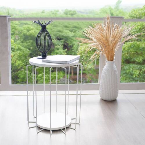 Conjunto com 2 Mesas Laterais Redonda Branco