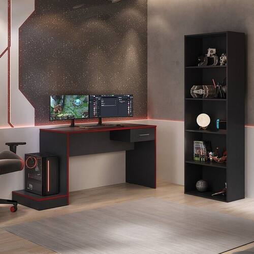 É a solução perfeita para quem busca um móvel organizador. Organização Eficiente: Cinco nichos espaçosos e prateleiras para organizar livros, objetos decorativos ou itens diversos. Adapta-se a Diferentes Ambientes: Ideal para salas, escritórios ou áreas de estudo, oferecendo versatilidade no armazenamento. Design Funcional: Oferece espaços variados para melhor organizar e exibir seus pertences. Compatível com Diversos Estilos: Versatilidade para combinar com diferentes estilos de decoração. Montagem Simples: Fácil de montar para que você aproveite rapidamente a organização extra. Material Durável: Fabricada com materiais de qualidade para garantir resistência e durabilidade. Oferece organização e praticidade para diversos espaços e necessidades! Altura do Conjunto: 180 cm Ambiente Principal: Sala de Estar codigo_ean: 7900288275349 Cor: Preto Cor do Produto: Preto Informação Complementar: 1x Escrivaninha Mesa Escritório Gamer 1 Gaveta 160,5cm Preto E Vermelho Preto/Vermelho Largura: 160,5 cm Altura: 74,5 cm Peso: 22,8 kg Profundidade: 55,5 cm Necessita Montagem: Sim