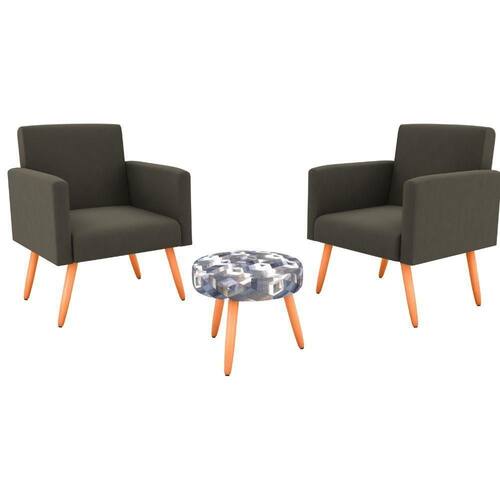 A poltrona Dallas da Matrix e compacta e perfeita para atender todas as suas necessidades. Ela e produzida a partir de madeira de reflorestamento, tal como eucalipto. Tambem possui apoio para os bracos, almofadas do assento e encosto fixas, acabamento em grampos e parafusos, lindos pes palito de madeira castanho. E mais, ela ainda vem acompanhada de um lindo e confortavel Puff para voce utilizar em diferentes espacos e necessidades. Os moveis da Matrix terao grande destaque em sua casa, pode ter certeza!