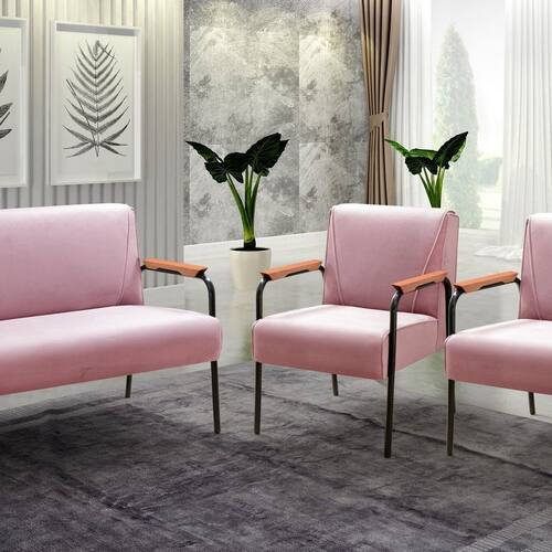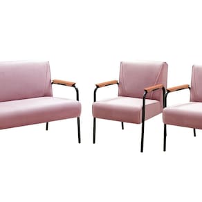 Conjunto com 2 Poltronas e Namoradeira Decorativa Jade Sala de Estar Rose - Rosa