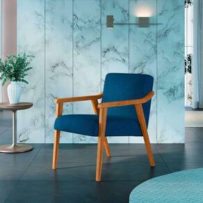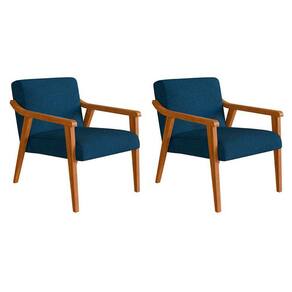 conjunto com 2 poltronas flavia poliéster azul marinho e nogueira - Azul Petróleo