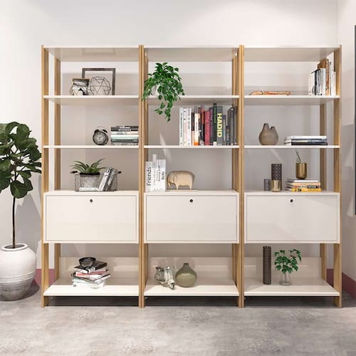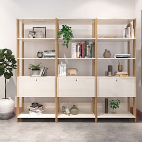 que tal o conjunto de estantes match? seja para você que é amante da leitura ou para você que precisa organizar o escritório, as 3 estantes do conjunto match têm muita pde para o dia a dia. como a parte superior é dividida em nichos e a inferior tem porta, você pode organizar objetos que precisam ficar à mostra, como itens de decoração, e guardar aqueles outros que não ficam tão bonitos quando expostos. já o visual atemporal destaca a cor neutra e o amadeirado, criando um móvel charmoso para qualquer decoração. perfeito, não é? Marca: Modern