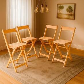 Leve mais praticidade e charme para seu ambiente com o nosso Conjunto com 4 Banquetas Dobráveis em Madeira Pinus Natural. Perfeitas para quem valoriza funcionalidade e estética, essas banquetas são ideais para espaços compactos, cozinhas , áreas gourmet, bares, varandas e até para uso em eventos.