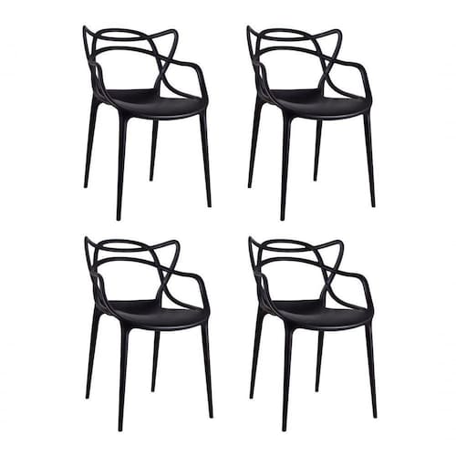 Conjunto Com 4 Cadeira Allegra Solna Masters Sala Jantar Pretas Modelo: Cadeira Allegra Masters Conhecida no mundo inteiro pelo seu design único e a forma como foi criada a cadeira Allegra Masters é uma homenagem a três cadeiras símbolo da história do design a cadeira Jacobsen de Arne Jacobsen a cadeira Saarinen de Eero Saarinen e a DSR do casal Eames. Os modelos se entrelaçam em uma combinação de curvas dando vida a uma e cativante fusão de estilos. Material da Estrutura: Polipropileno Garantia de 3 meses por de fabricação. Altura Total: 84 cm Altura do Chão Até o Assento: 48 cm Profundidade Interna do Assento: 48 cm Largura Interna do Assento: 53 cm Peso Máx. Recomendado: 120 kgs Peso unitário: 4,2 kgs