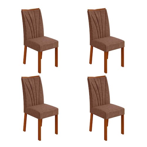 Conjunto com 4 Cadeiras Apogeu Revestimento Sintético Avelã e Frassino - Marrom