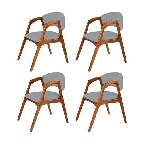 Características Tipo: Cadeira de Jantar Modelo: Gabriela Cor da Estrutura: Cerejeira Cor do Assento e Encosto: Cinza Tecido do Assento e Encosto: Linho