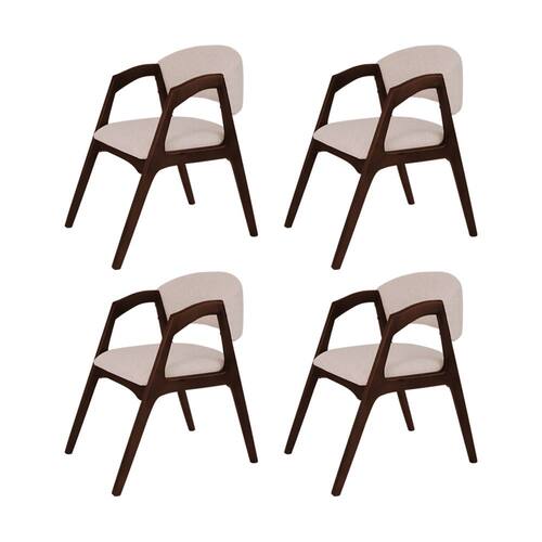 Conjunto com 4 Cadeiras de Jantar Gabriela em Madeira e Mdf Castanho Linho Bege