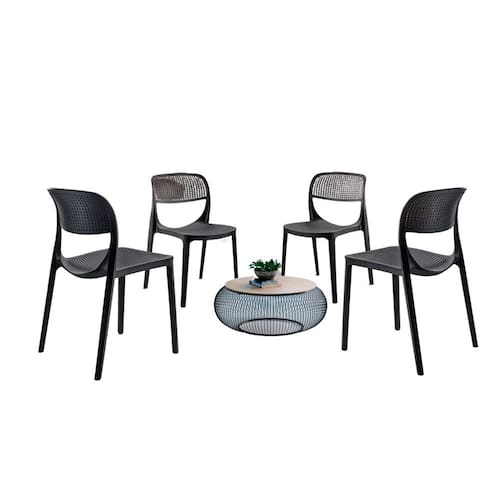 Características: Modelo: Zoe Material: Polipropileno Quantidade de cadeiras: 04 Cor disponível: Preta NÃO NECESSITA MONTAGEM