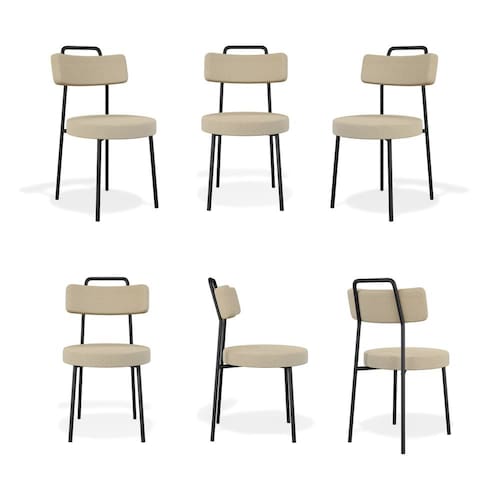 Conjunto com 6 Cadeiras de Escritório Ster Linho Gengibre - Vallisa Decor - Preto | Bege