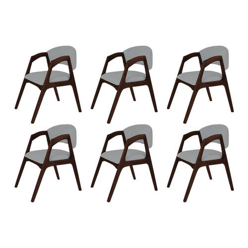 Conjunto com 6 Cadeiras de Jantar Estofada Gabriela em Madeira e Mdf Castanho Linho Cinza