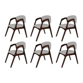 Conjunto com 6 Cadeiras de Jantar Gabriela em Madeira e Mdf Castanho Linho Cinza Prata