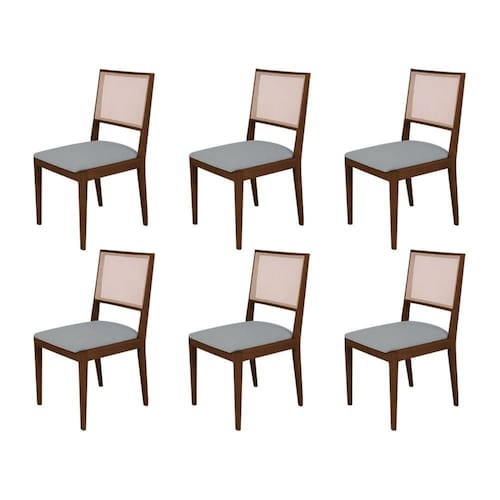 AS IMAGENS SÃO MERAMENTE ILUSTRATIVAS E PODEM SOFRER VARIAÇÕES DE COR E PEQUENOS DETALHES DE ACORDO COM O SEU MONITOR, ILUMINAÇÃO DO AMBIENTE E ATÉ MESMO A SUA PERCEPÇÃO VISUAL.Conjunto com 6 Cadeiras de Jantar Suellen em Madeira e Mdf Mel Linho Cinza