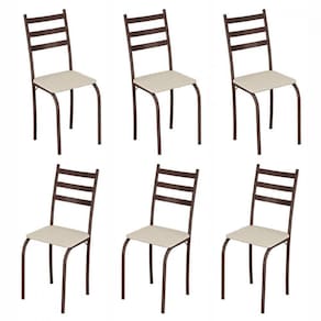 Conjunto Com 6 Cadeiras Marabá Marrom Assento Creme Teixeira Marrom Com Creme Nada como ter os moveis certos para cada ambiente, nao e mesmo? Sua sala de jantar ou cozinha, vai ficar ainda mais linda com este Conjunto com de 6 cadeiras! Ideal para acomodar aos amigos de forma confortavel garantindo reunioes agradaveis ao redor da mesa, elas possuem um design classico e oferecem diversas possibilidades na hora de decorar o espaco. Dimensoes: Altura: 85 cm | Largura: 37 cm | Profundidade: 45 cm