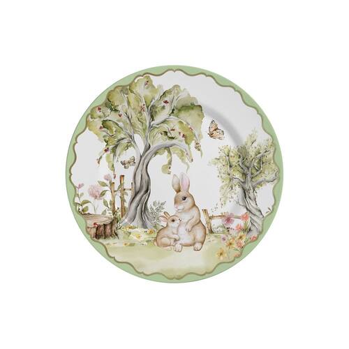 Contendo 6 pratos de sobremesa com 21 cm de diâmetro.