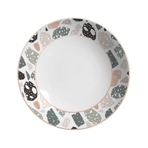 Revendedor autorizado. Produto direto da fábrica Alleanza Cerâmica. Cerâmica Feldspática branca de alta resistência, com processo de decoração digital, sobre a base branca. Produto Não Refratário e não libera substancias tóxicas. Pode ser levada ao micro-ondas e lava-louças. Tipo de embalagem: Caixa parda. Contendo 6 pratos fundos com 25 cm de diâmetro. :90 dias por defeito de fabricação e 1 ano para gretamento. Podem ocorrer pequenas variações de tonalidades de cor, brilho, textura e tamanho das peças, em função de fatores relacionados ao processo de transformação de matérias primas naturais e variações existentes nas etapas de conformação, decoração e queima.