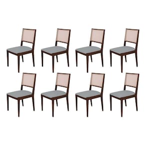 AS IMAGENS SÃO MERAMENTE ILUSTRATIVAS E PODEM SOFRER VARIAÇÕES DE COR E PEQUENOS DETALHES DE ACORDO COM O SEU MONITOR, ILUMINAÇÃO DO AMBIENTE E ATÉ MESMO A SUA PERCEPÇÃO VISUAL.Conjunto com 8 Cadeiras de Jantar Suellen em Madeira e Mdf Castanho Linho Cinza