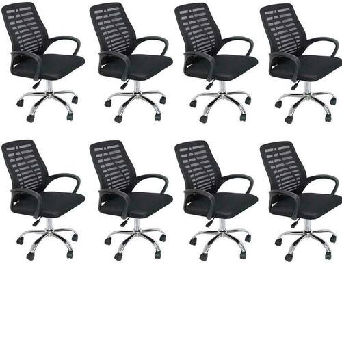 Conjunto com 8 Cadeiras Escritório Office Diretor com Rodízio Cádis Preto