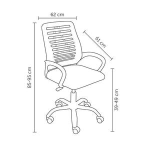Cadeira office giratória com encosto em tela mesh, com braços em polipropileno e base em aço cromado. Possui regulagem de altura (mínimo 85cm e máximo 95cm), não possui função relax.