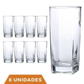 Conjunto Com 8 Copos Vidro Bali Quadrado 320ml Transparente