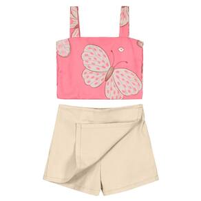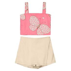 Para as pequenas fashionistas arrasarem, Conjunto infantil menina Brandili composto por cropped e shorts saia, muito estilo e conforto! O cropped confeccionado em crepe texturizado sublimado e combat, possui estampa rotativa, ajuste com elástico nas costas e alças finas, já o shorts saia confeccionado em sarja comfort de cor lisa conta com elástico no cós que facilita na hora de vestir. Aposte!