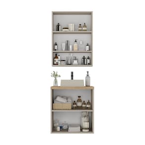 Funcionalidade e estilo em um só conjunto. Acabamento da Cuba: Pintura UV Acabamento da Porta: BP Melamínico Acabamento da Prateleira: BP Melamínico Acompanha Cuba: Sim Acompanha Gaveteiro: Não Acompanha Manual de Instalação: Sim Acompanha Parafusos Para Fixação Na Parede: Sim Acompanha Tampo: Sim Acompanha Válvula: Não Altura do Espelho: 80 cm Ambiente Principal: Banheiro codigo_ean: 7900288210821 Complexidade da Montagem: Média: pode ser montado por mais de uma pessoa e/ou necessite de maior conhecimento para montagem Cor: Panna / Carvalho Cor do Produto: Panna / Carvalho Cor Flex: Não Escala de Brilho: Fosco Escala de Brilho da Porta: Fosco Escala de Brilho da Prateleira: Fosco Espessura do Espelho: 3 mm Formato da Cuba: Quadrado Formato do Espelho: Retangular Formato Espelheira: Retangular Furação para Cuba e Torneira: Não Itens Inclusos: 1 Espelheira, 1 Gabinete, 1 Cuba, Kit Ferragens e Manual de Montagem Largura do Espelho: 30 cm Linha ou Coleção: Marrom Manual de Montagem e Instalação: https://product-hub-prd.madeiramadeira.com.br/967160687/documents/2dab864e-6575-4237-ae68-2d254b28b4003117692183017543887877427.pdf Marca: Estilare Material da Cuba: Cerâmica Material da Porta: MDF Material da Prateleira: MDF Material do Tampo: MDF Material Principal: MDF Medida da Cuba (C x L x P): 34cm x 33,5cm x 9,8cm Medida da Espelheira (A x L x P): 80cm x 60cm x 16,5cm Medida do Gabinete (A x L x P): 65cm x 60cm x 40cm Montagem Flex: Não Necessita Montagem: Sim Origem do Produto: Nacional Peso: 44,52 kg Peso Máximo por Prateleira: 7 kg Possui Espelheira: Sim Possui Gabinete: Sim Possui Gavetas: Não Possui iluminação: Não Possui Nichos: Não Possui Pés: Não Possui Porta de Vidro: Não Possui Recorte No Tampo Para Cuba: Não Possui Recorte No Tampo Para Misturador: Não Possui Rodízio: Não Possui Sifão: Não Possui Tampo: Sim Possui Tampo de Vidro: Não Produto Montado: Não Quantidade de Espelhos: 02 Espelhos com Tamanhos Iguais Recomendações de Uso, Manutenção e Limpeza: Limpar com um pano levemente umedecido Sistema de Montagem: Parafusos, cantoneiras, Minifix e Cavilhas Suporte para Toalheiro: Não Tamanho do Espelho (A x L): 80 x 30 Tamanho do Gabinete: Médio: de 60cm a 80cm de largura Tamanho do Produto: 145cm x 60cm x 40cm Tipo de Cuba: Sobrepor Tipo de Dobradiça/Corrediça da Porta: Com Amortecedor Tipo de Fixação do Espelho: Silicone Tipo de Gabinete: Gabinete Aéreo Tipo de Porta: Abrir Tipo de Puxador da Porta: Alumínio Válvula indicada: Não específica