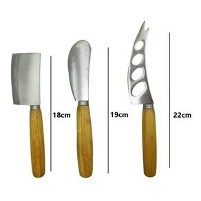 Cada utensílios Possui um cabo de madeira de alta qualidade e lâmina de aço inoxidável. Um tamanho bom e afiado o suficiente na borda para poder fatiar, espalhar e servir queijos macios e duros. Este kit serve perfeitamente para qualquer ocasião, bandejas de festa, mesa de jantar, churrasco etc.