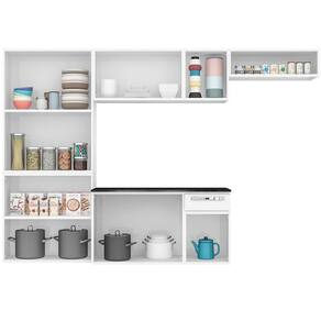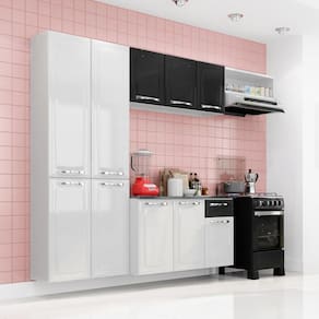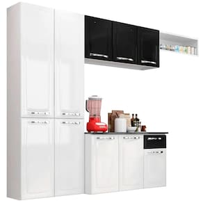 Características: Estrutura geral prod.: aço Quantidade de portas: 10 Quantidade de gavetas: 1 Quantidade de prateleiras/base: 8 Material pés: não acompanha Corrediças: telescópica Dobradiças: metálica 26 mm Puxadores: puxadores em ps metalizado Acompanha tampo: sim Material tampo: mdp ff granito onix Material das costas: HDF